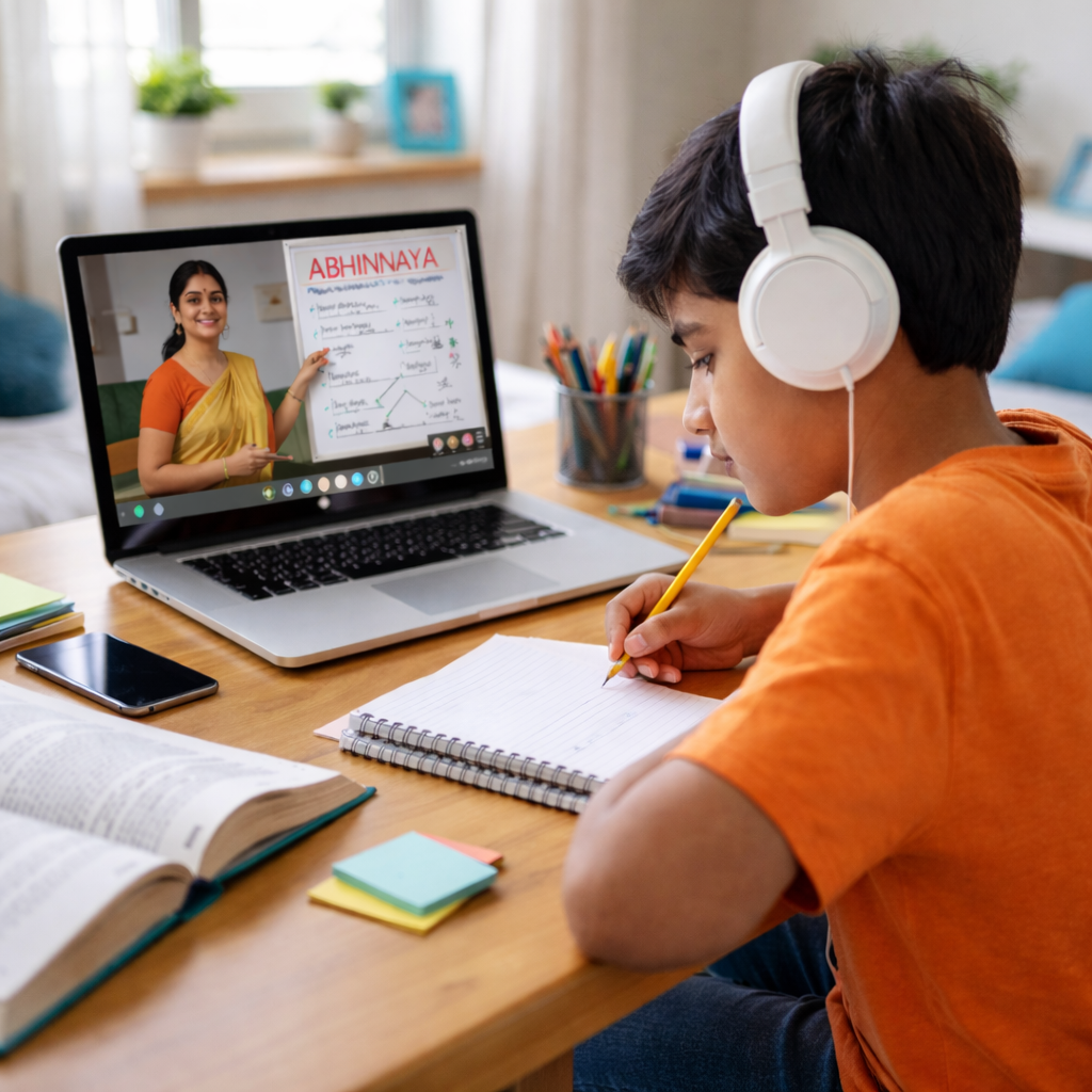 At Abhiinnayā School of Excellence, our online classes are designed to bring high-quality learning directly to your home. We combine expert teaching, modern technology, and a student-friendly approach to create an interactive and effective learning experience.
